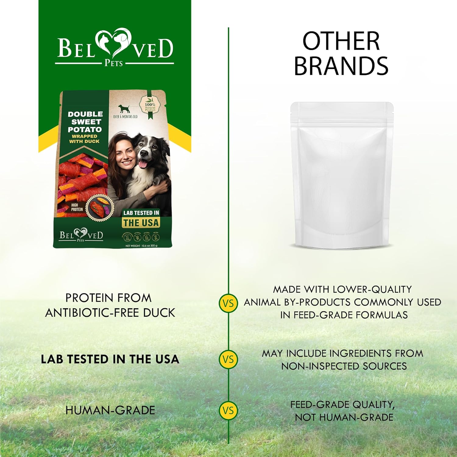 Beloved Pets Sweet Potato Dog Treats & Healthy Duck Chews 10.6 Oz - Puppy Snacks & Soft Bones for Large, Medium & Small Breeds - Natural Dog Food & Grain-Free, Rawhide-Free Training Jerky Wraps